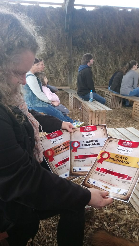 SIVKICA – sivkina marmelada je dobila ZLATO priznanje, LUBENIČICA – lubenična marmelada je prejela SREBRNO PRIZNANJE in GROZDIKA – grozdna marmelada je prejela BRONASTO priznanje.